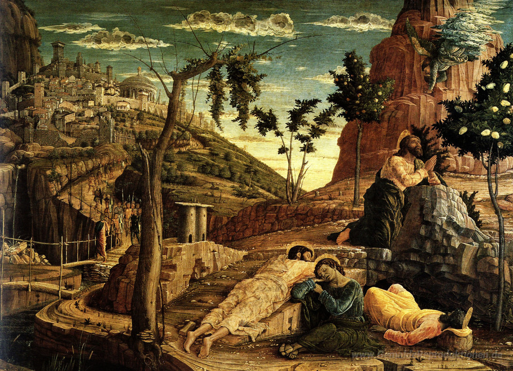 Wir bieten Ihnen eine handgefertigte Reproduktion auf Leinwand des berühmten Kunstwerks 'Gebet im Garten' von Andrea Mantegna, aus dem Reproduktionsmuseum.