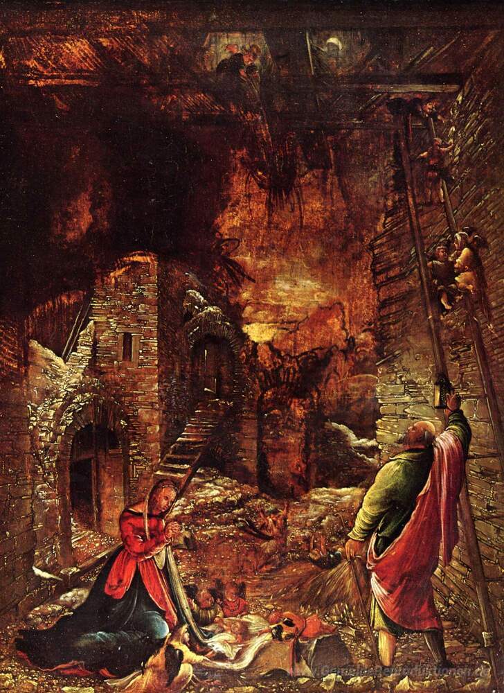 Wir bieten Ihnen eine handgefertigte Reproduktion auf Leinwand des berühmten Kunstwerks 'Geburt' von Albrecht Altdorfer, aus dem Reproduktionsmuseum.