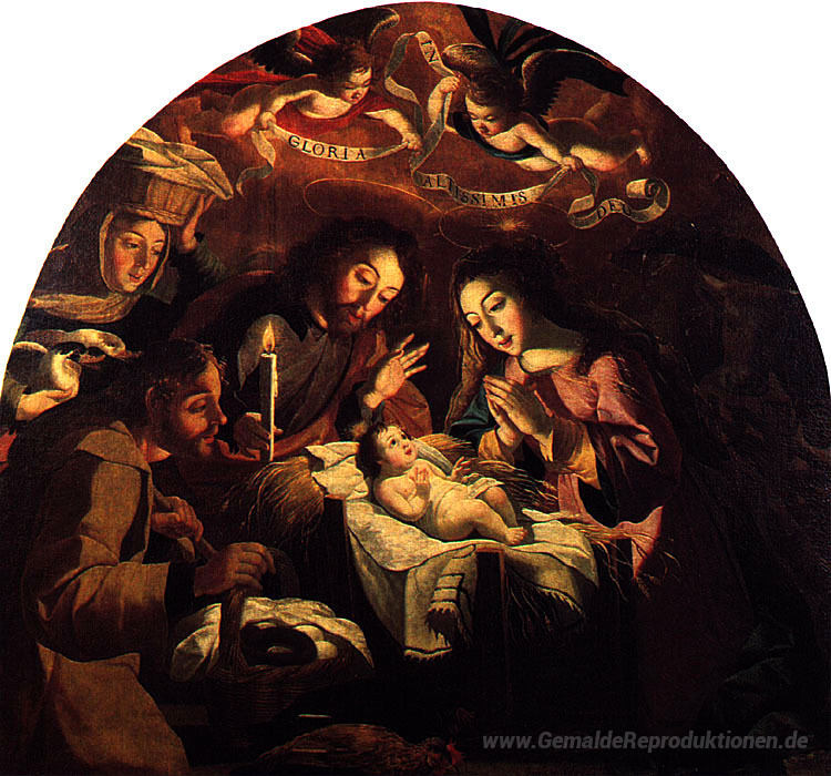 Wir bieten Ihnen eine handgefertigte Reproduktion auf Leinwand des berühmten Kunstwerks 'Geburt von Jesus' von Josefa de Obidos, aus dem Reproduktionsmuseum.