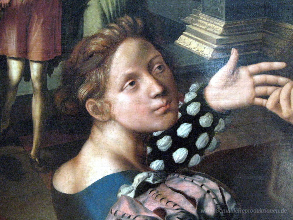Wir bieten Ihnen eine handgefertigte Reproduktion auf Leinwand des berühmten Kunstwerks 'Gleichnis vom verlorenen Sohn (Detail)' von Jan van Hemessen, aus dem Reproduktionsmuseum.