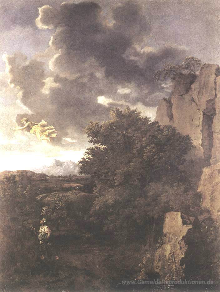 Wir bieten Ihnen eine handgefertigte Reproduktion auf Leinwand des berühmten Kunstwerks 'Hagar und dem Engel' von Nicolas Poussin, aus dem Reproduktionsmuseum.