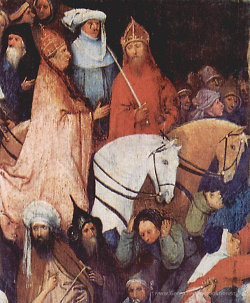 Wir bieten Ihnen eine handgefertigte Reproduktion auf Leinwand des berühmten Kunstwerks 'Haywain (Detail)' von Hieronymus Bosch, aus dem Reproduktionsmuseum.