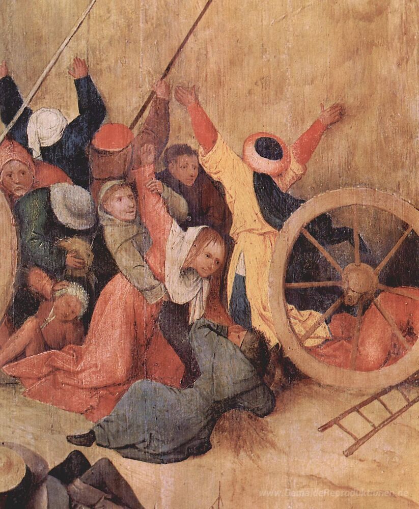 Wir bieten Ihnen eine handgefertigte Reproduktion auf Leinwand des berühmten Kunstwerks 'Haywain (Detail)' von Hieronymus Bosch, aus dem Reproduktionsmuseum.