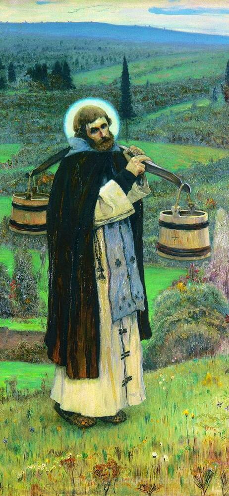 Wir bieten Ihnen eine handgefertigte Reproduktion auf Leinwand des berühmten Kunstwerks 'Heiligen Sergius 'Arbeit (linker Teil des Triptychons)' von Mikhail Nesterov, aus dem Reproduktionsmuseum.