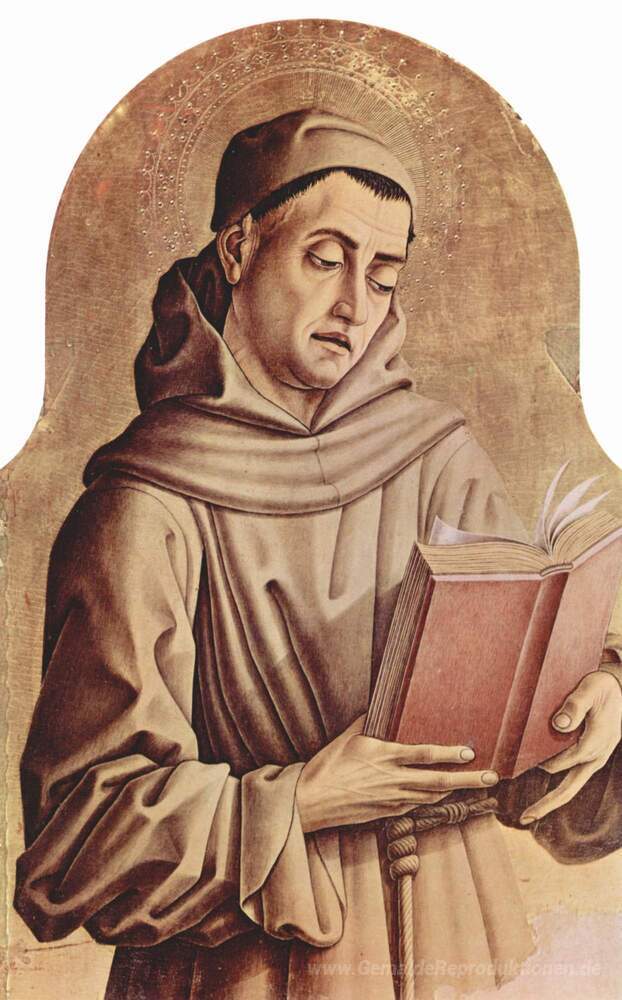 Wir bieten Ihnen eine handgefertigte Reproduktion auf Leinwand des berühmten Kunstwerks 'Heiliger Franziskus' von Carlo Crivelli, aus dem Reproduktionsmuseum.