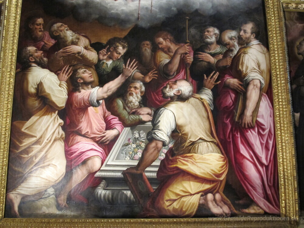 Wir bieten Ihnen eine handgefertigte Reproduktion auf Leinwand des berühmten Kunstwerks 'Himmelfahrt der Jungfrau (Detail)' von Giorgio Vasari, aus dem Reproduktionsmuseum.
