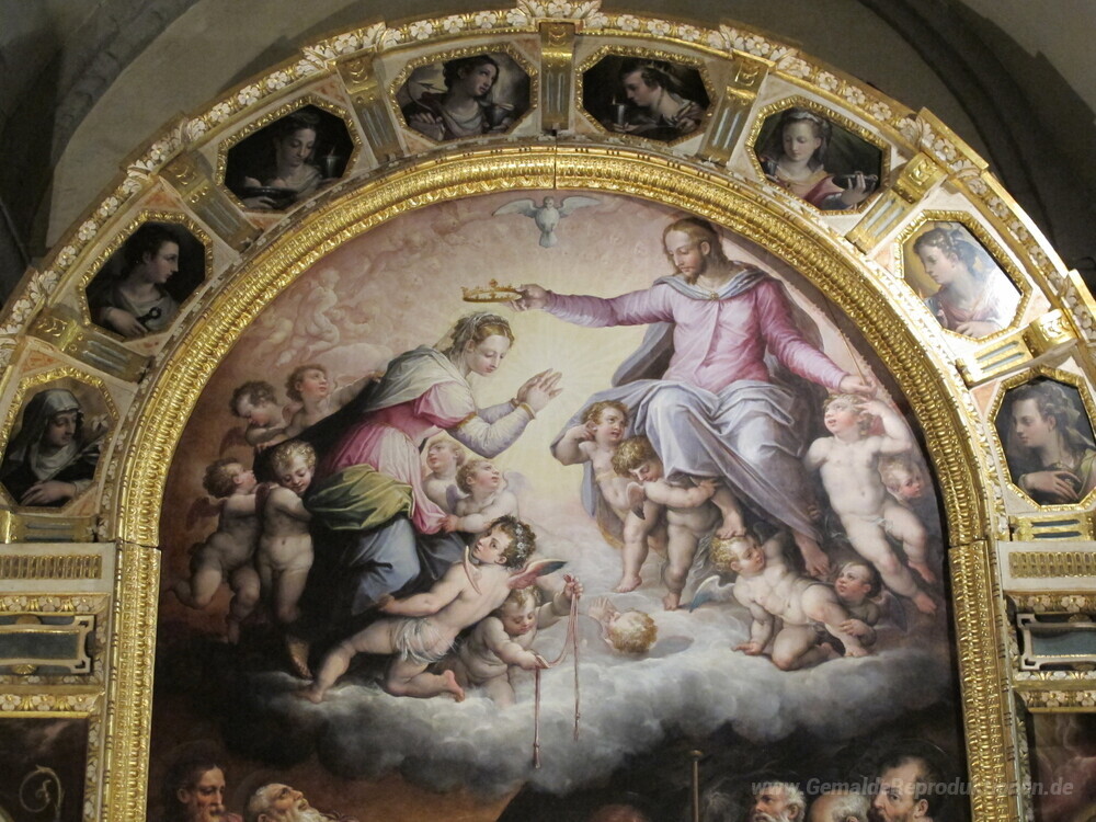 Wir bieten Ihnen eine handgefertigte Reproduktion auf Leinwand des berühmten Kunstwerks 'Himmelfahrt der Jungfrau (Detail)' von Giorgio Vasari, aus dem Reproduktionsmuseum.