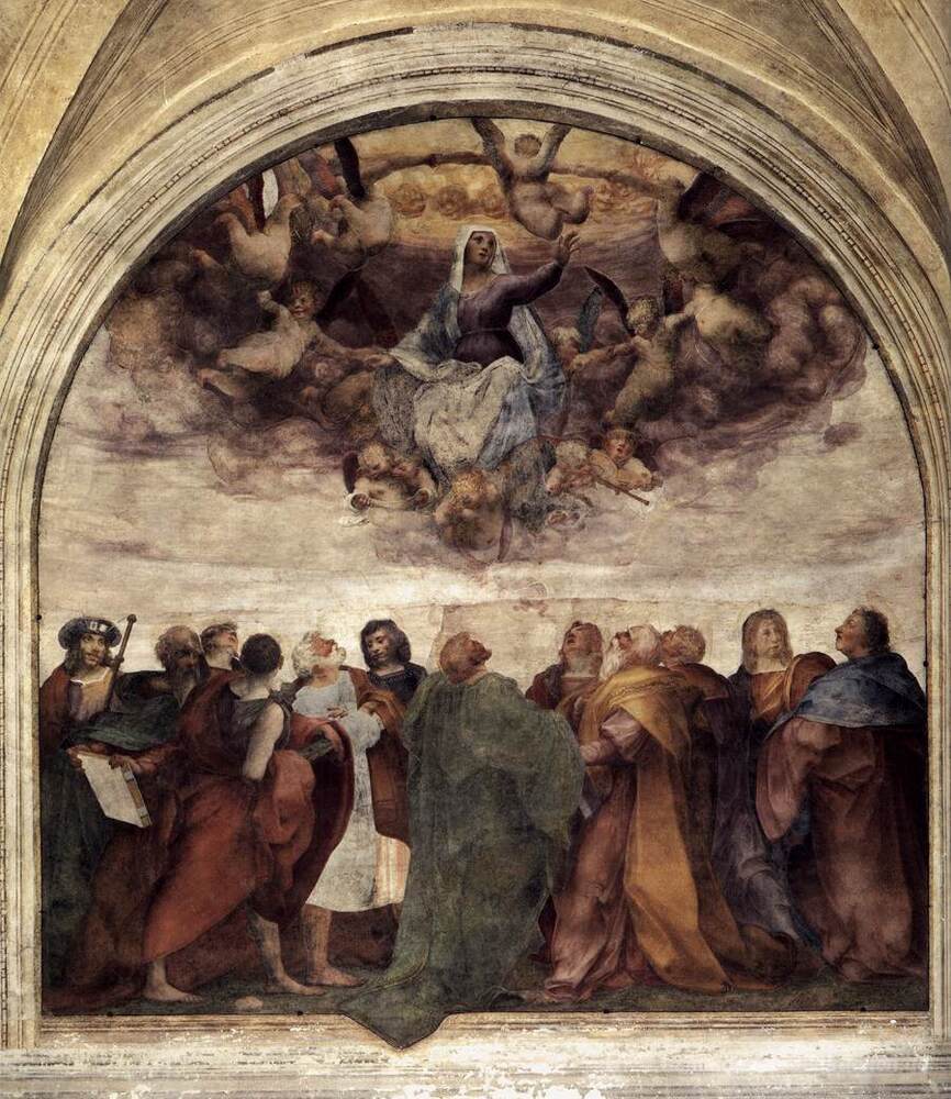 Wir bieten Ihnen eine handgefertigte Reproduktion auf Leinwand des berühmten Kunstwerks 'Himmelfahrt der Jungfrau' von Rosso Fiorentino, aus dem Reproduktionsmuseum.