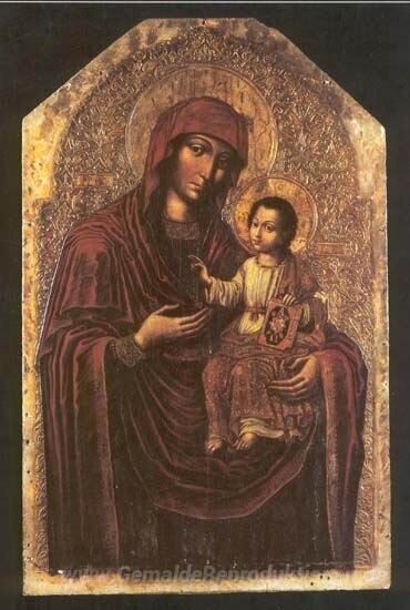 Wir bieten Ihnen eine handgefertigte Reproduktion auf Leinwand des berühmten Kunstwerks 'Ikone der Mutter Gottes aus dem Maniava Hermitage Ikonostase' von Yov Kondzelevych, aus dem Reproduktionsmuseum.