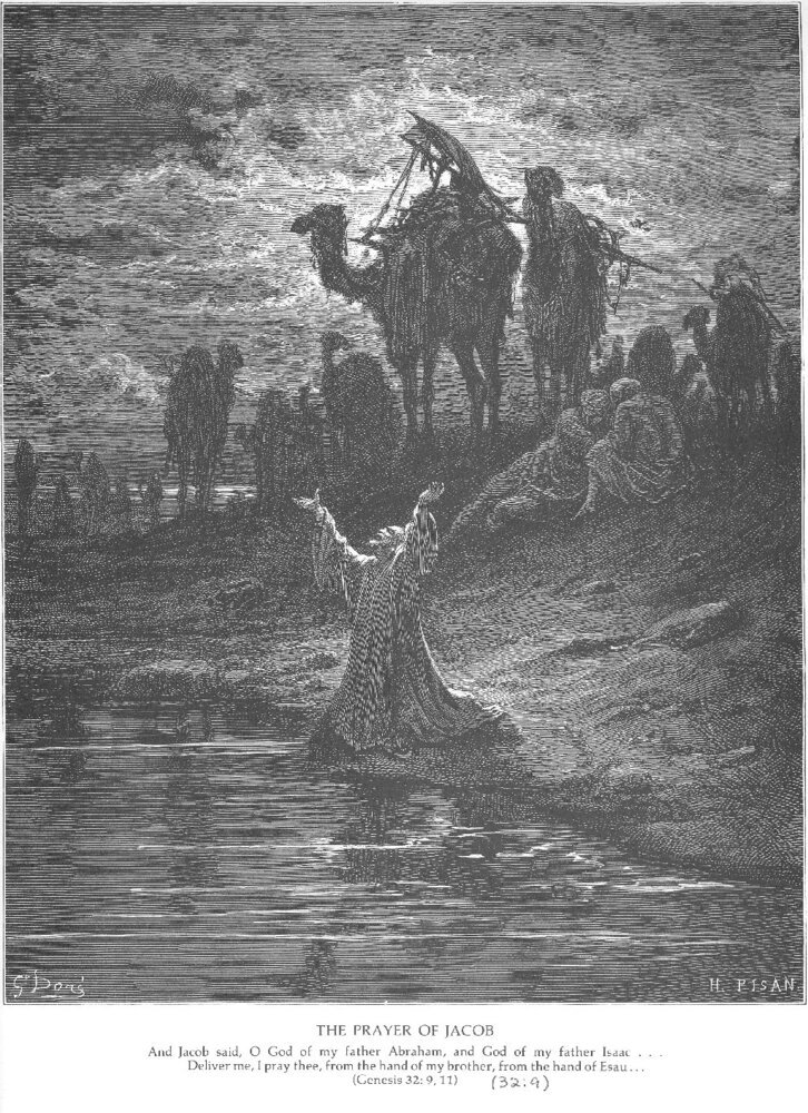 Wir bieten Ihnen eine handgefertigte Reproduktion auf Leinwand des berühmten Kunstwerks 'Jacob betet um Schutz' von Gustave Dore, aus dem Reproduktionsmuseum.