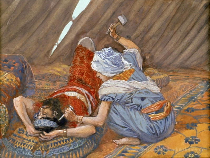 Wir bieten Ihnen eine handgefertigte Reproduktion auf Leinwand des berühmten Kunstwerks 'Jael Smote Sisera und tötete ihn' von James Tissot, aus dem Reproduktionsmuseum.