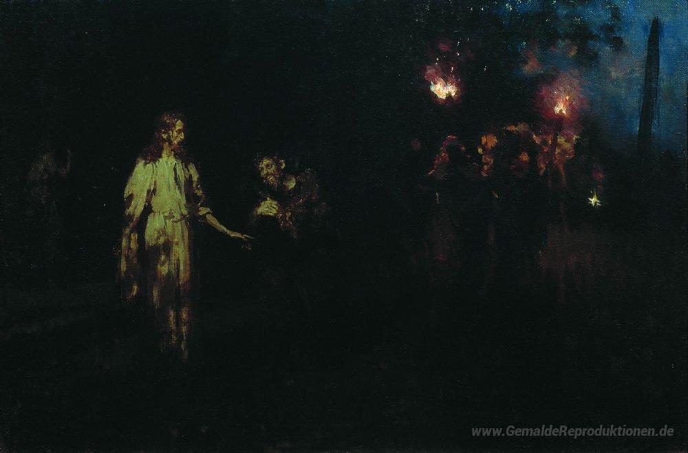 Wir bieten Ihnen eine handgefertigte Reproduktion auf Leinwand des berühmten Kunstwerks 'Jesus Christus im Garten Gethsemane' von Ilya Repin, aus dem Reproduktionsmuseum.