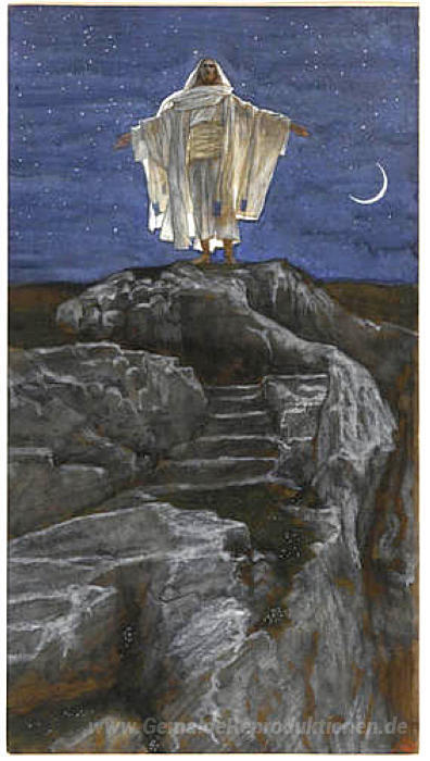 Wir bieten Ihnen eine handgefertigte Reproduktion auf Leinwand des berühmten Kunstwerks 'Jesus geht alleine auf einen Berg, zu beten' von James Tissot, aus dem Reproduktionsmuseum.