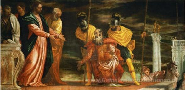 Wir bieten Ihnen eine handgefertigte Reproduktion auf Leinwand des berühmten Kunstwerks 'Jesus Heilung der Diener eines Centurion' von Paolo Veronese, aus dem Reproduktionsmuseum.