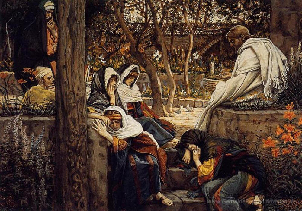 Wir bieten Ihnen eine handgefertigte Reproduktion auf Leinwand des berühmten Kunstwerks 'Jesus in Bethanien' von James Tissot, aus dem Reproduktionsmuseum.