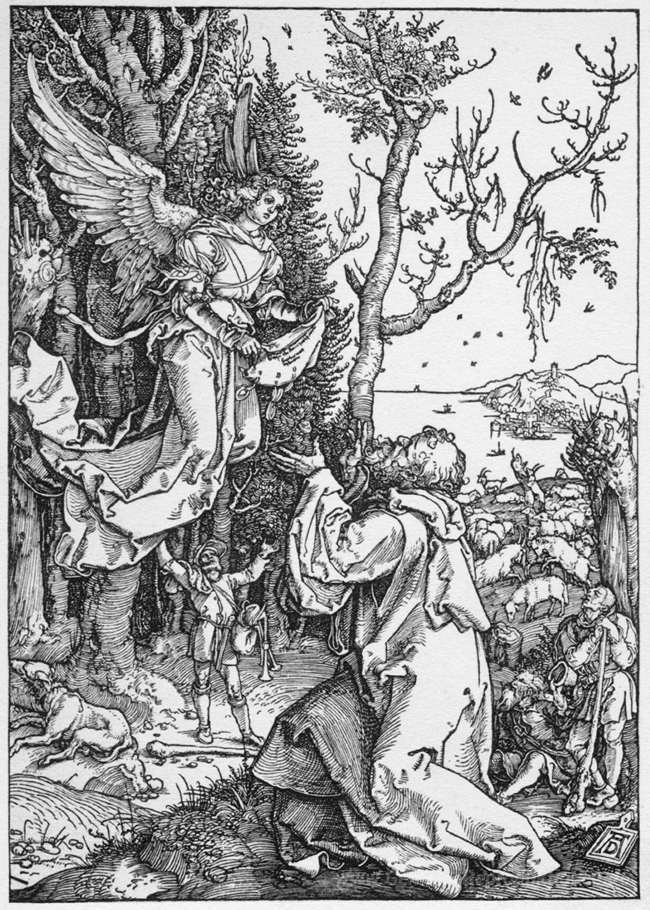 Wir bieten Ihnen eine handgefertigte Reproduktion auf Leinwand des berühmten Kunstwerks 'Joachim und der Engel von der "Leben der Jungfrau"' von Albrecht Durer, aus dem Reproduktionsmuseum.