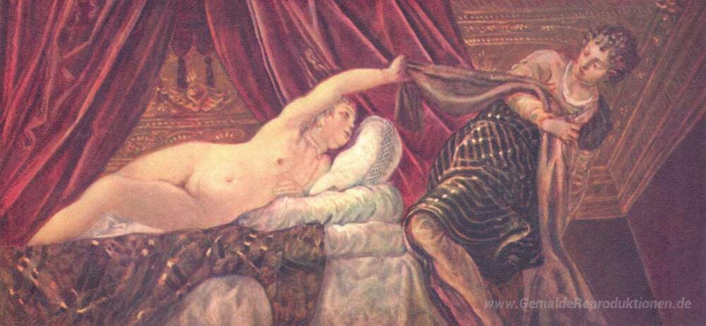 Wir bieten Ihnen eine handgefertigte Reproduktion auf Leinwand des berühmten Kunstwerks 'Joseph und Potiphars Frau' von Tintoretto, aus dem Reproduktionsmuseum.