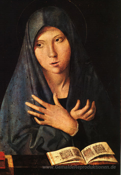 Wir bieten Ihnen eine handgefertigte Reproduktion auf Leinwand des berühmten Kunstwerks 'Jungfrau der Ankündigung' von Antonello da Messina, aus dem Reproduktionsmuseum.