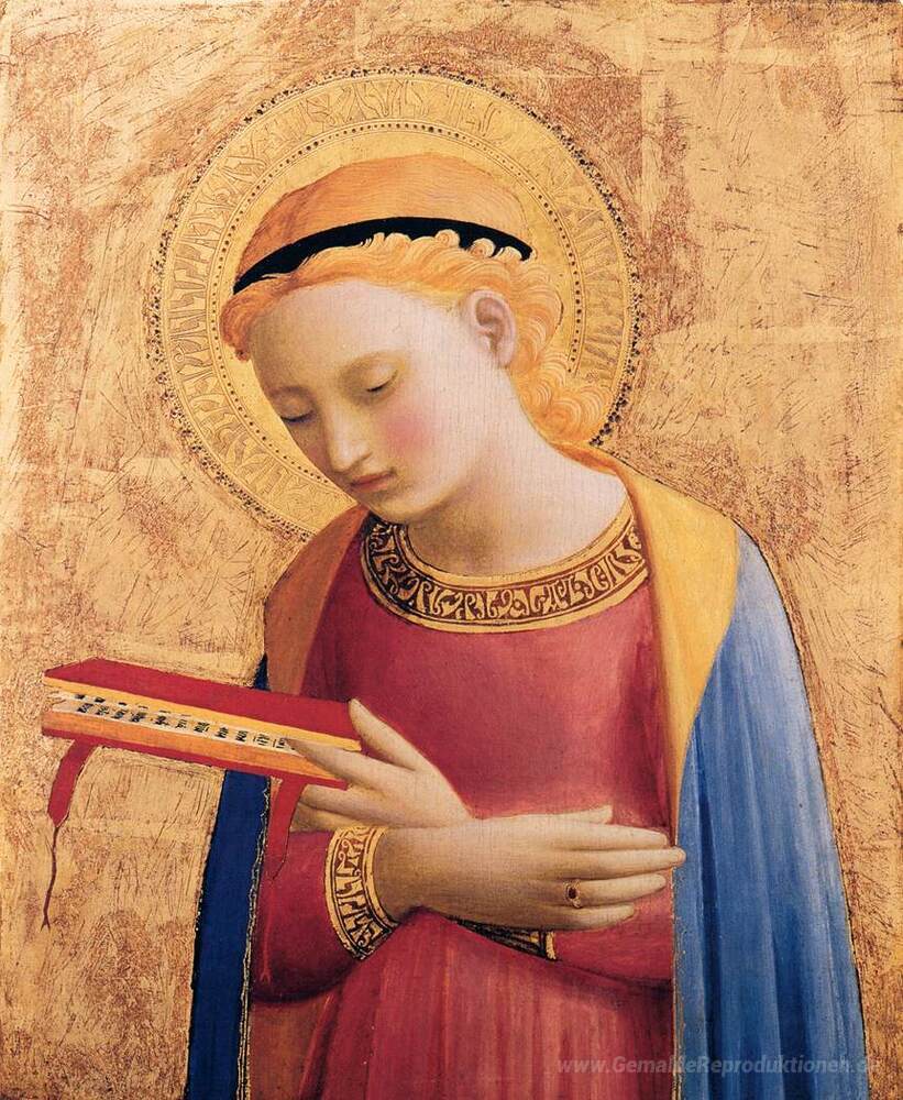 Wir bieten Ihnen eine handgefertigte Reproduktion auf Leinwand des berühmten Kunstwerks 'Jungfrau Maria der Verkündigung' von Fra Angelico, aus dem Reproduktionsmuseum.