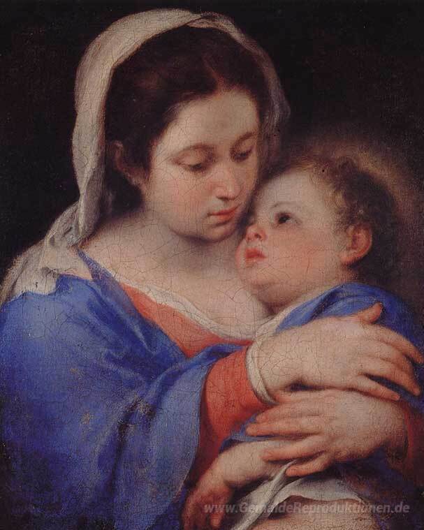 Wir bieten Ihnen eine handgefertigte Reproduktion auf Leinwand des berühmten Kunstwerks 'Jungfrau und Kind' von Bartolome Esteban Murillo, aus dem Reproduktionsmuseum.