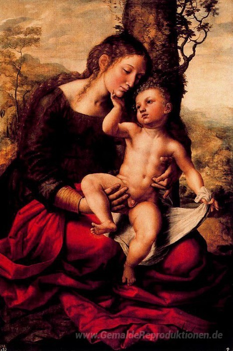 Wir bieten Ihnen eine handgefertigte Reproduktion auf Leinwand des berühmten Kunstwerks 'Jungfrau und Kind' von Jan van Hemessen, aus dem Reproduktionsmuseum.