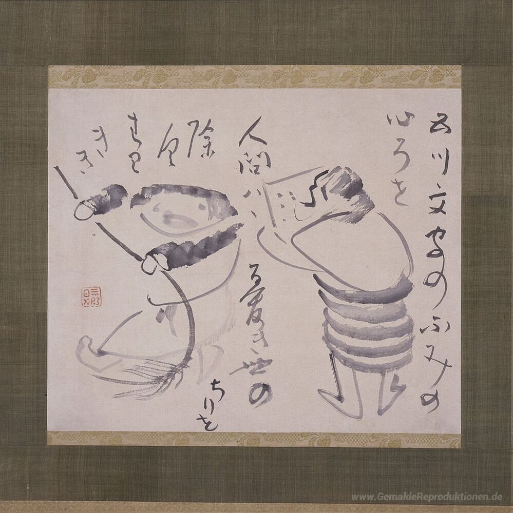 Willkommen in der faszinierenden Welt der Ölgemälde, wo Kunst und Emotion in jedem Pinselstrich verbunden sind. Unsere sorgfältig ausgewählten Werke, wie das Meisterwerk Kanzan und Jittoku von Sengai, reflektieren nicht nur die technische Brillanz des Künstlers, sondern auch die tiefgreifende kulturelle Bedeutung. Sengai, bekannt für seine einzigartige Ansprache des Zen-Buddhismus in der Kunst, setzt minimale Formen und subtile Farben ein, um den Betrachter in eine meditative Stimmung zu versetzen.