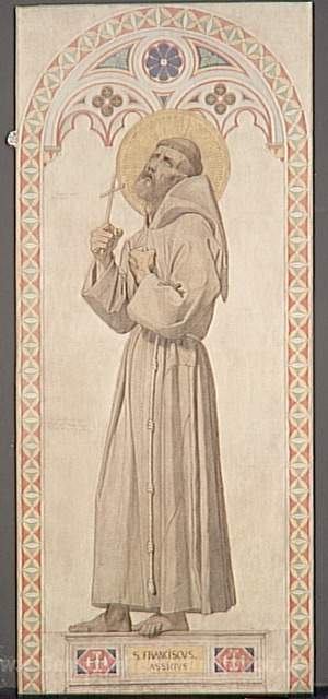 Wir bieten Ihnen eine handgefertigte Reproduktion auf Leinwand des berühmten Kunstwerks 'Karton Fenster der Kapelle des St. Ferdinand. Franz von Assisi' von Jean Auguste Dominique Ingres, aus dem Reproduktionsmuseum.