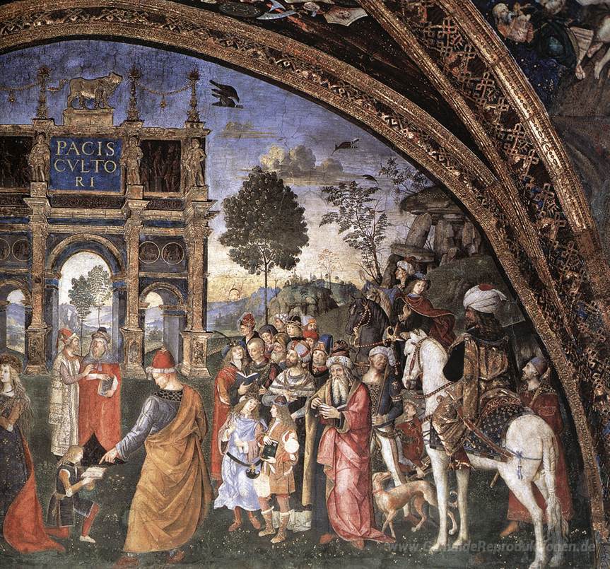 Wir bieten Ihnen eine handgefertigte Reproduktion auf Leinwand des berühmten Kunstwerks 'Katharinen Disputation (Detail)' von Pinturicchio, aus dem Reproduktionsmuseum.
