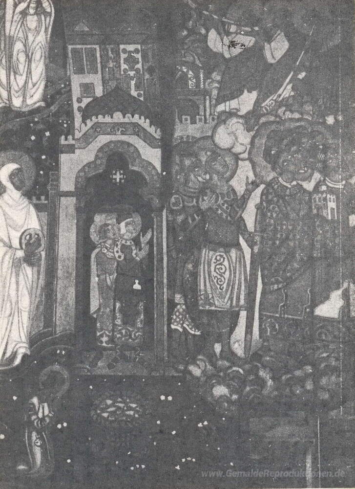 Wir bieten Ihnen eine handgefertigte Reproduktion auf Leinwand des berühmten Kunstwerks 'Kniend Krieger (Studium der Wandbilder für die Kapelle in Pskow)' von Nicholas Roerich, aus dem Reproduktionsmuseum.