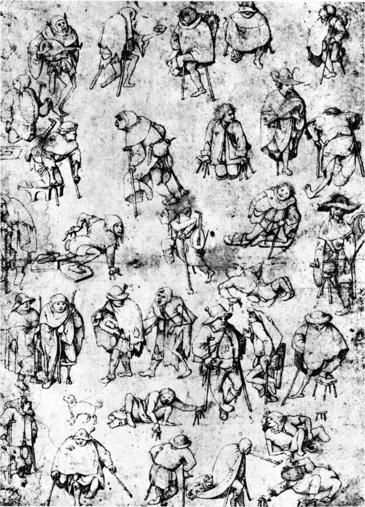 Wir bieten Ihnen eine handgefertigte Reproduktion auf Leinwand des berühmten Kunstwerks 'Krüppel' von Hieronymus Bosch, aus dem Reproduktionsmuseum.