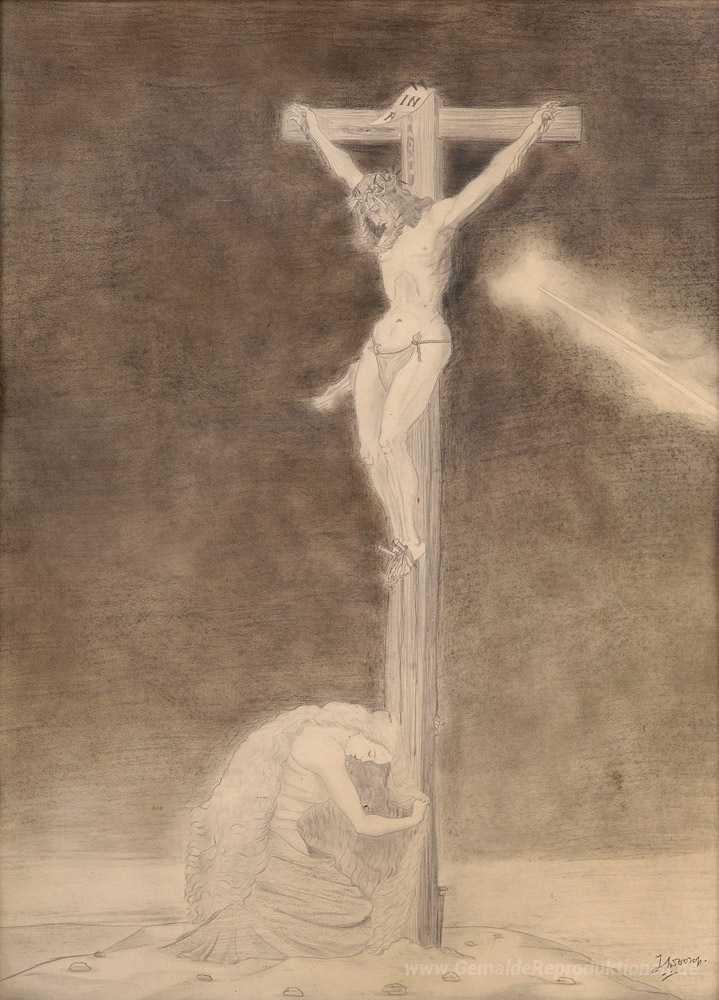 Wir bieten Ihnen eine handgefertigte Reproduktion auf Leinwand des berühmten Kunstwerks 'Kreuzigung' von Jan Toorop, aus dem Reproduktionsmuseum.