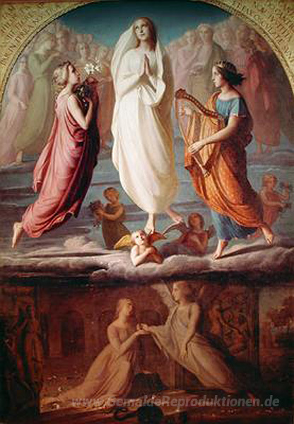 Wir bieten Ihnen eine handgefertigte Reproduktion auf Leinwand des berühmten Kunstwerks 'L'Assomption de la Vierge' von Louis Janmot, aus dem Reproduktionsmuseum.