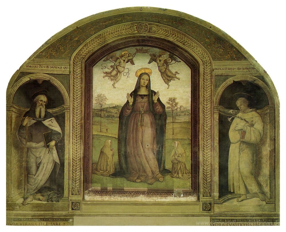 Wir bieten Ihnen eine handgefertigte Reproduktion auf Leinwand des berühmten Kunstwerks 'Madonna delle Grazie' von Pietro Perugino, aus dem Reproduktionsmuseum.