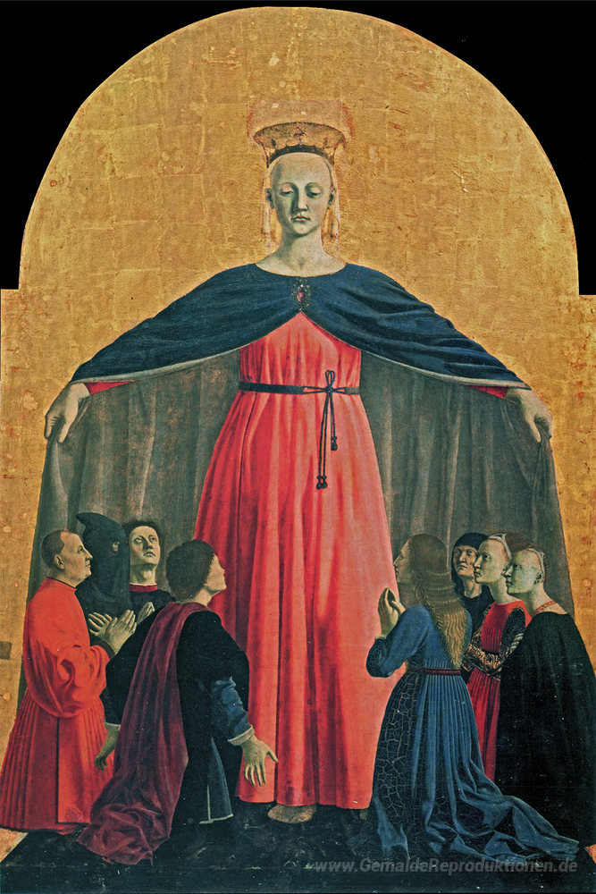 Wir bieten Ihnen eine handgefertigte Reproduktion auf Leinwand des berühmten Kunstwerks 'Madonna der Barmherzigkeit' von Piero della Francesca, aus dem Reproduktionsmuseum.