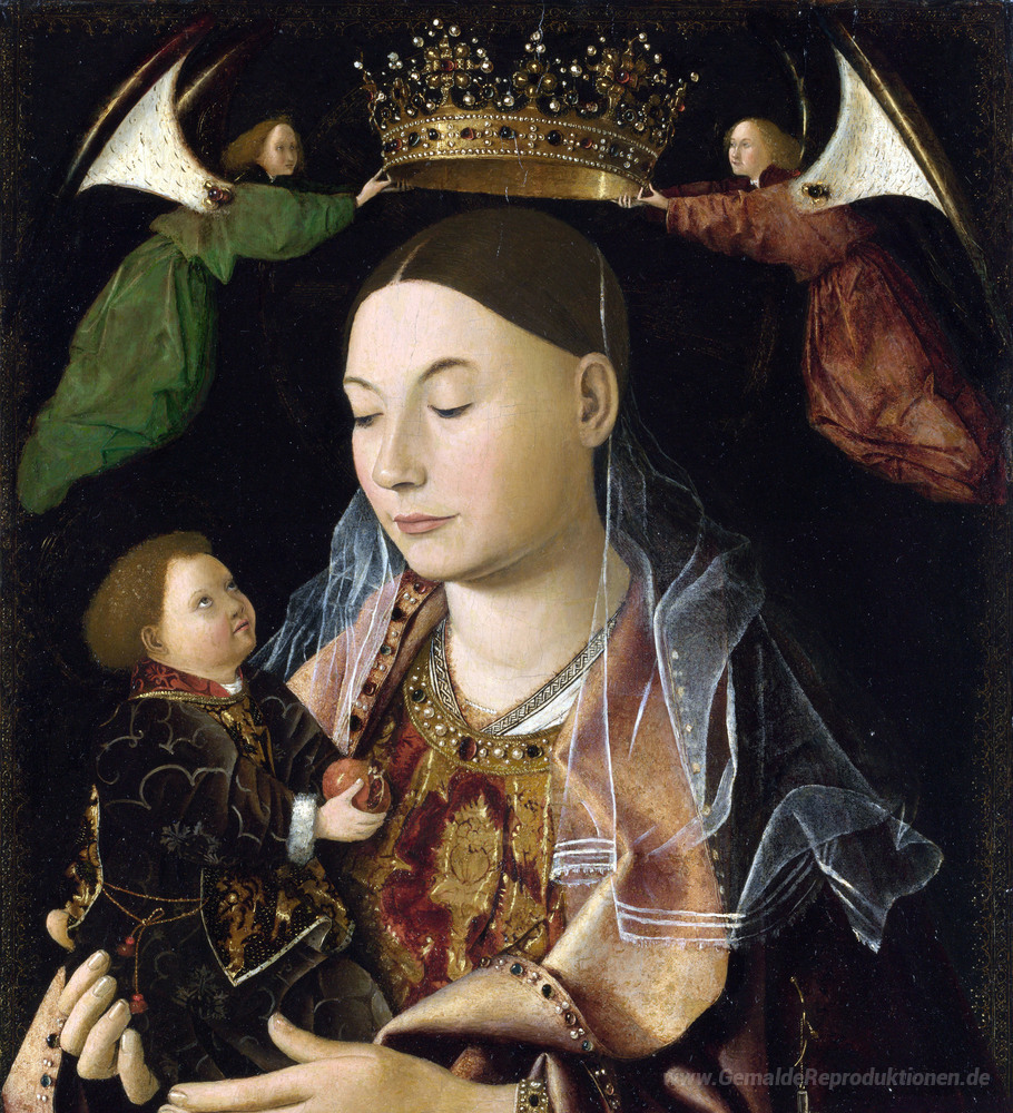 Wir bieten Ihnen eine handgefertigte Reproduktion auf Leinwand des berühmten Kunstwerks 'Madonna mit dem Kind (Madonna Salzen)' von Antonello da Messina, aus dem Reproduktionsmuseum.