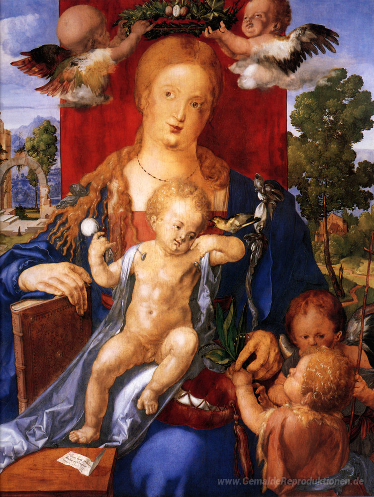 Wir bieten Ihnen eine handgefertigte Reproduktion auf Leinwand des berühmten Kunstwerks 'Madonna mit dem Siskin' von Albrecht Durer, aus dem Reproduktionsmuseum.