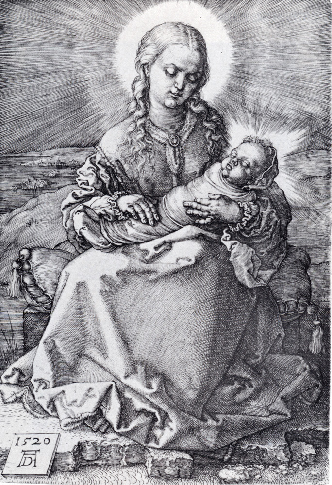 Wir bieten Ihnen eine handgefertigte Reproduktion auf Leinwand des berühmten Kunstwerks 'Madonna mit der Swaddled Infant' von Albrecht Durer, aus dem Reproduktionsmuseum.