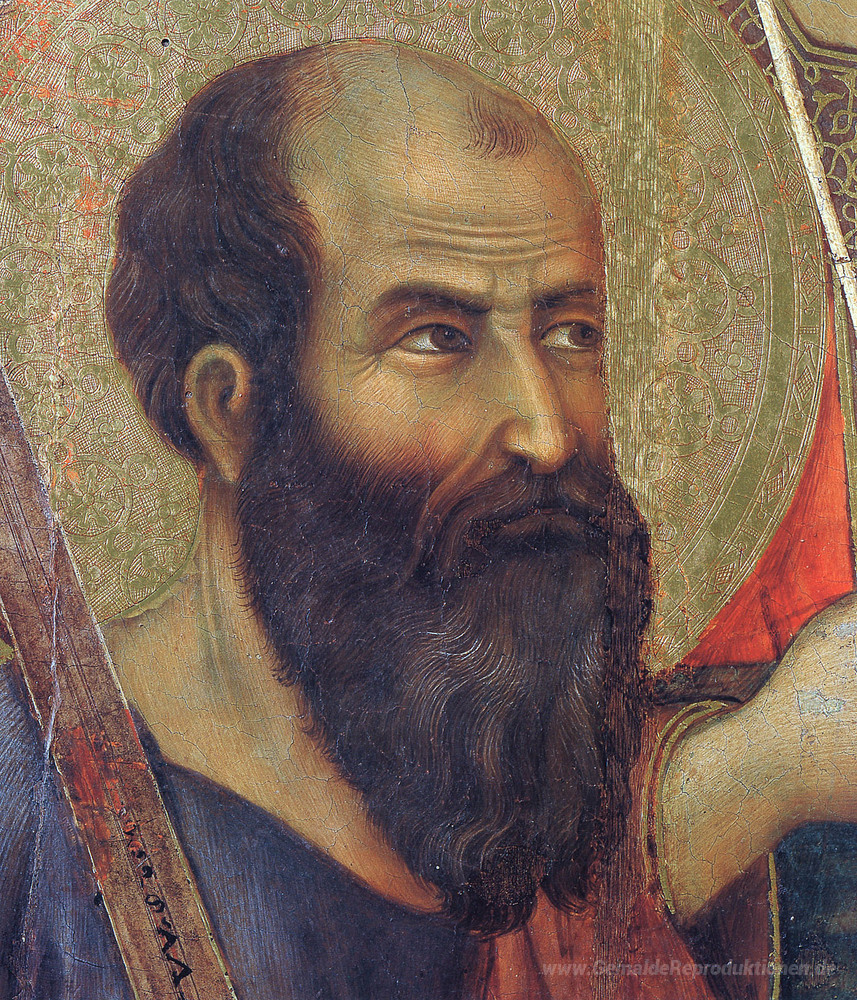 Wir bieten Ihnen eine handgefertigte Reproduktion auf Leinwand des berühmten Kunstwerks 'Madonna mit Kind auf dem Thron (Vorderseite-Fragment)' von Duccio, aus dem Reproduktionsmuseum.