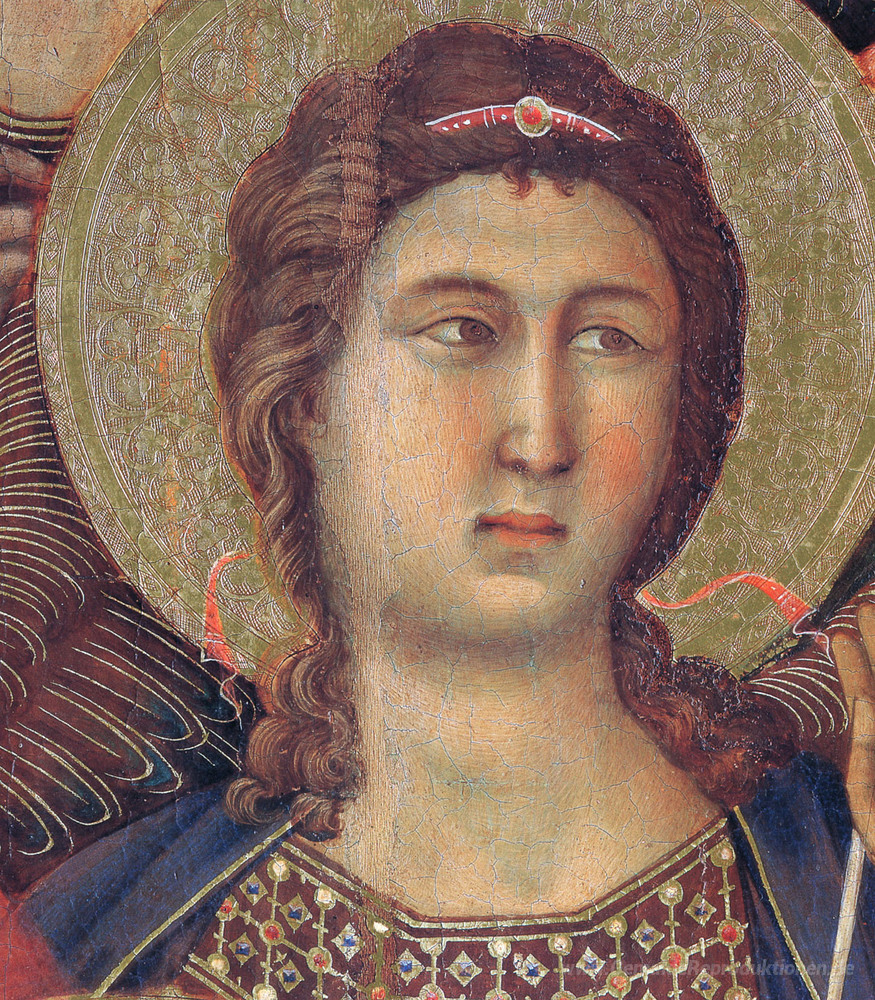 Wir bieten Ihnen eine handgefertigte Reproduktion auf Leinwand des berühmten Kunstwerks 'Madonna mit Kind auf dem Thron (Vorderseite-Fragment)' von Duccio, aus dem Reproduktionsmuseum.
