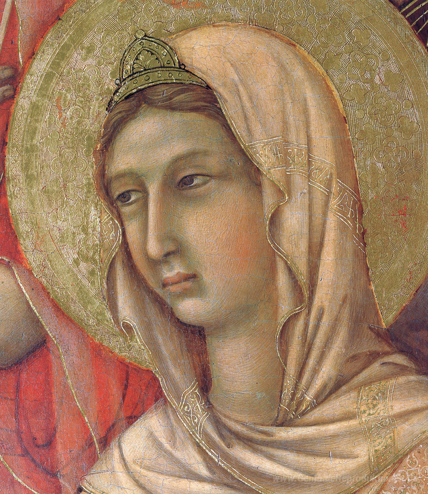 Wir bieten Ihnen eine handgefertigte Reproduktion auf Leinwand des berühmten Kunstwerks 'Madonna mit Kind auf dem Thron (Vorderseite-Fragment)' von Duccio, aus dem Reproduktionsmuseum.