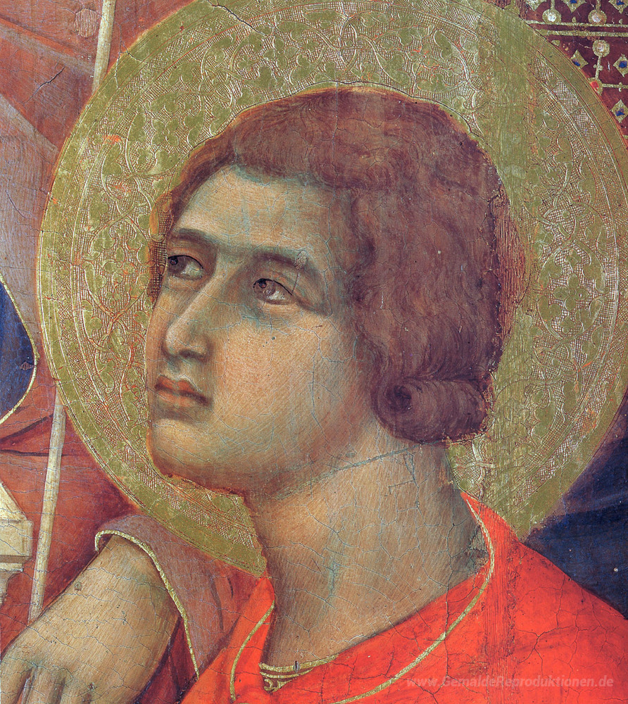 Wir bieten Ihnen eine handgefertigte Reproduktion auf Leinwand des berühmten Kunstwerks 'Madonna mit Kind auf dem Thron (Vorderseite-Fragment)' von Duccio, aus dem Reproduktionsmuseum.