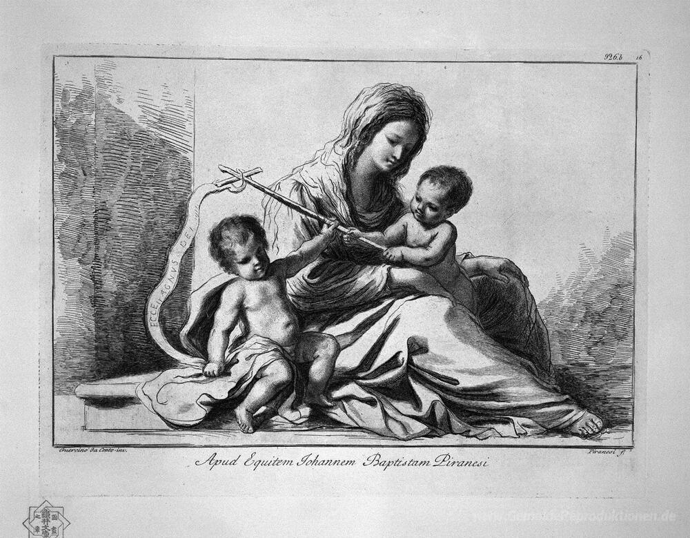 Wir bieten Ihnen eine handgefertigte Reproduktion auf Leinwand des berühmten Kunstwerks 'Madonna und Kind mit St. Johannes der Täufer' von Giovanni Battista Piranesi, aus dem Reproduktionsmuseum.