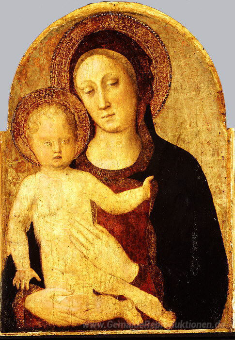 Wir bieten Ihnen eine handgefertigte Reproduktion auf Leinwand des berühmten Kunstwerks 'Madonna und Kind' von Jacopo Bellini, aus dem Reproduktionsmuseum.