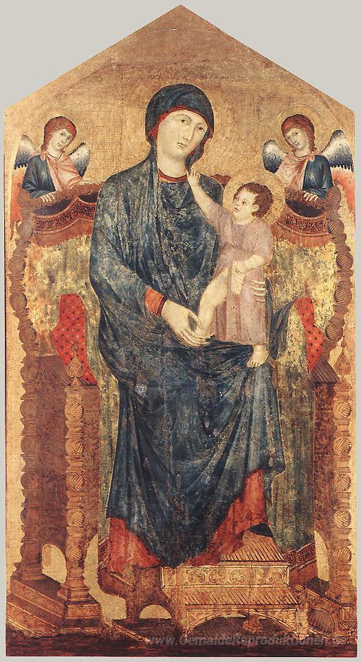Wir bieten Ihnen eine handgefertigte Reproduktion auf Leinwand des berühmten Kunstwerks 'Maestà' von Duccio, aus dem Reproduktionsmuseum.