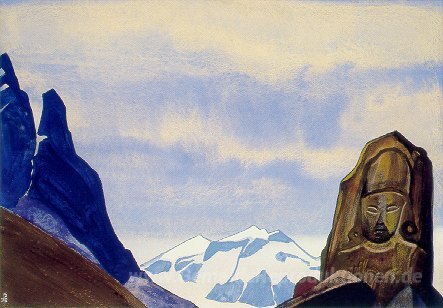 Wir bieten Ihnen eine handgefertigte Reproduktion auf Leinwand des berühmten Kunstwerks 'Maitreya' von Nicholas Roerich, aus dem Reproduktionsmuseum.