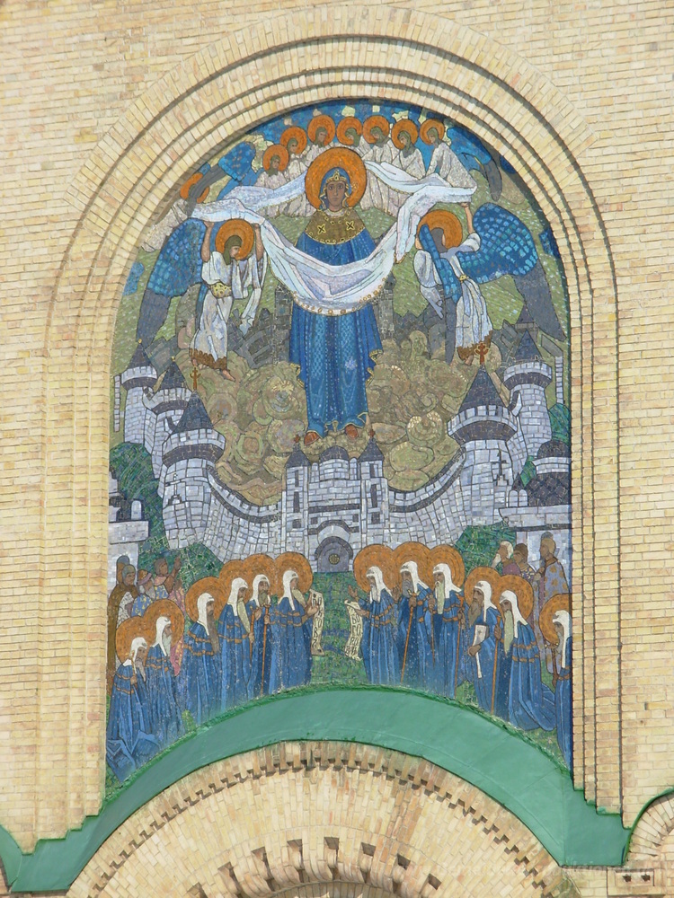 Wir bieten Ihnen eine handgefertigte Reproduktion auf Leinwand des berühmten Kunstwerks 'Mariä Schutz und Fürbitte' von Nicholas Roerich, aus dem Reproduktionsmuseum.
