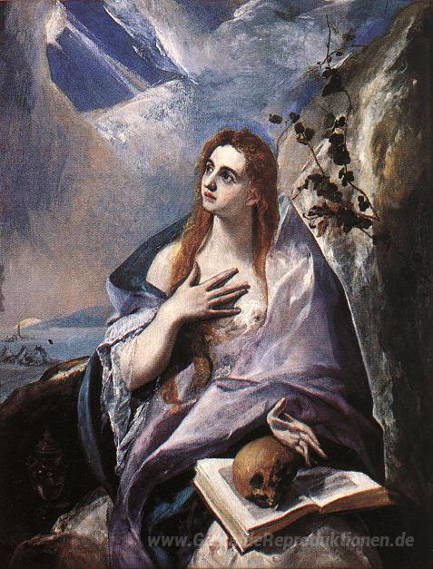 Wir bieten Ihnen eine handgefertigte Reproduktion auf Leinwand des berühmten Kunstwerks 'Maria Magdalena in Penitence' von El Greco, aus dem Reproduktionsmuseum.