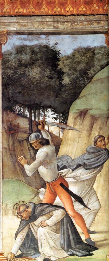 Wir bieten Ihnen eine handgefertigte Reproduktion auf Leinwand des berühmten Kunstwerks 'Martyrium von St. Petrus Martyr' von Domenico Ghirlandaio, aus dem Reproduktionsmuseum.
