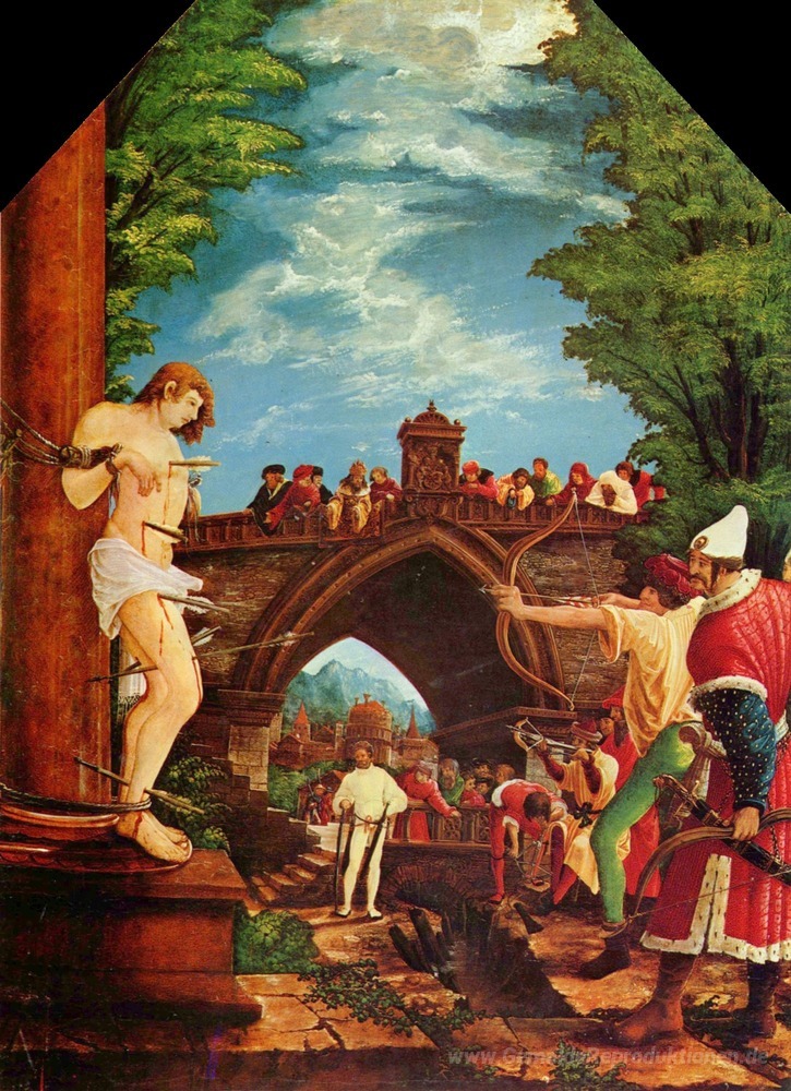 Wir bieten Ihnen eine handgefertigte Reproduktion auf Leinwand des berühmten Kunstwerks 'Martyrium von St. Sebastian' von Albrecht Altdorfer, aus dem Reproduktionsmuseum.
