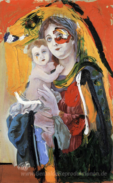 Wir bieten Ihnen eine handgefertigte Reproduktion auf Leinwand des berühmten Kunstwerks 'Mater Profana (Defiguration)' von Asger Jorn, aus dem Reproduktionsmuseum.